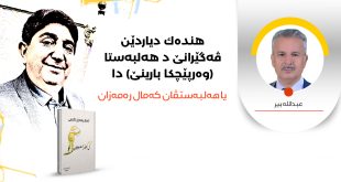 تمامیا بابەتیهەلبەستا (وەرپێچكا بارینێ) ئێكە ژ كۆما هەلبەستێن هوزانڤان كەمال رەمەزانی كو ل ژێر ناڤێ (ئەم ل وێرا هەبووین) ل سالا (2023) ژ لایی چاپخانا خانی/ دهۆك هاتیە چاپكرن و كەفتیە بەردەستێ خواندەڤانان، ئەڤ كۆما هەلبەستان ژ (17) هەلبەستان پێكدهێت. هەلبەستڤان (كەمال رەمەزان) ئێكە ژ هەلبەستڤانێن دەڤەرا ئاكرێ، ژ نڤشێ هەلبەستڤانێن …