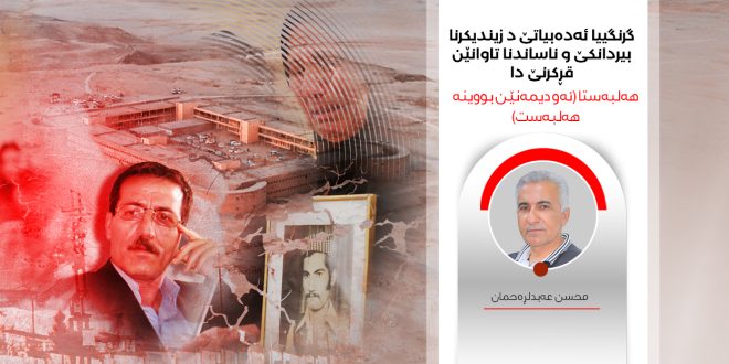 ب هژمار پێنچ هزار وهڵاتييێن سڤیل جانگوری بوون، چنكو شاعر ب خۆ پێشمهرگە بوو، ل دهمێ بۆمپەبارانكرنا هەلەبجە ئهو ل ئوردیگایێ زێوه ل رۆژههلاتێ كوردستانێ بوو، ئانكو ئهو د ناڤ رویداناندا بوو، لهو ب زمانێ دیدهڤان پهیام ئاراستهكری یه و تمامكری یه (دیسا.. مه ڤهشارتن) ئانكو پێش ڤێ كوشتارێ گهلهك كوشتارێن دی ههبوونه. هۆسا هەلەبجە بوو: