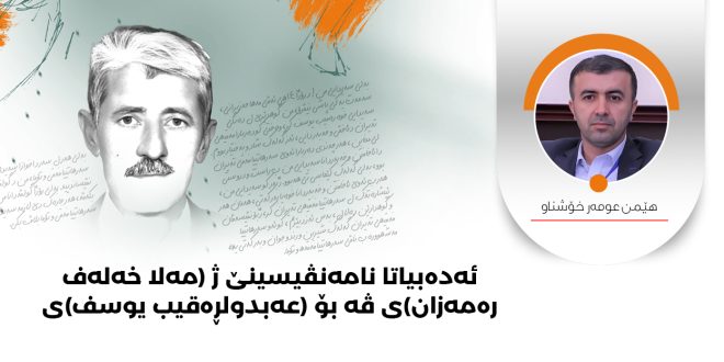 بەلێ ھێڤیدارم، کو ھوون نوسخەک دی ژ (ئەحمەدێ خانی(4)) ژ بۆ من ب رێ کن، ب سەربەستی وێ بگەھیژە من، سەلامێ من گەلەک ھەنە ل سەیدا دوکتۆر عیزەددین و ئەم گەلەک کەیف خوەشن ب عیلم و زانین و ھونەرمەندییا وی د گەل ھەڤالان. ئەز ھێڤیدارم، کو تو مەکتووبەکی ب تایبەتی ژ بۆ برادەرێ مە یێ ھێژا مەلا عەبدوڕەحمان سپیڤانی ب رێ کی، دا کو ئەو ژی ئالیکاریێ د گەل من بکە، ژ بەر کو برادەر مەلا عەبدوڕەحمان سپیڤانی سترانبێژ و چیرۆکڤان و رۆشنبیر و زانایەکی بەرکەتی یە. ئەگەر برادەر مەلا عەبدوڕەحمان ژی ئالیکاریێ د گەل مە بکە، ئەم دێ فایدێ ژێ وەرگرن.