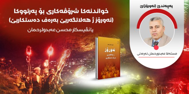 پشتی مە خواندنەکا شیکاری بۆ پەرتووکا (نەورۆز ژ هەلاتگەریێ بەرەف دەستکاریێ) یا نڤیسکار محسن عەبدورەحمان کری، ب فەر دبینم هندەک پێشنیاران بکەم کو ژ ئەنجامێ ڤێ خواندنێ هاتینە بەرهەم و هیڤیخوازم ژ جهێن پەیوەندیدار ب هەند وەربگرن و کار ل سەر بکەن، داکو هندەک شاشیێن مێژوویی دەربارەی نەورۆزێ راستڤەکەین.